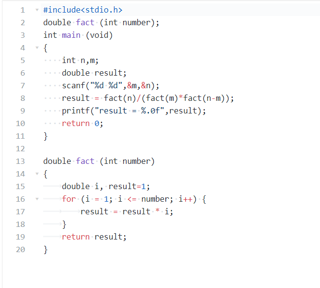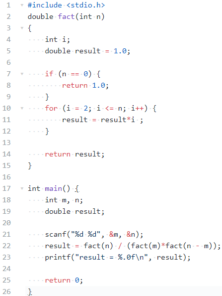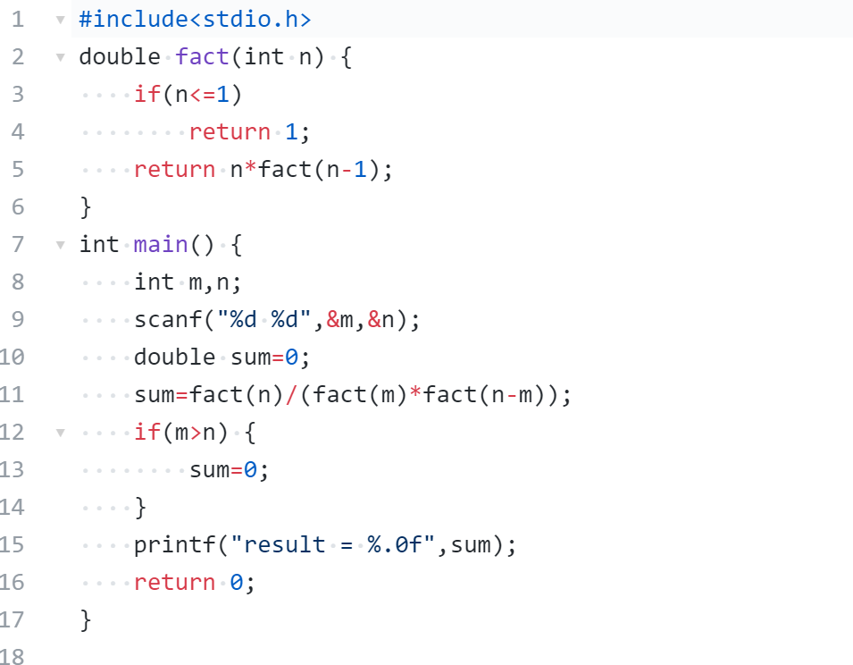 表达式:result *= i result = fact(n) / (fact(m)*fact(n - m))