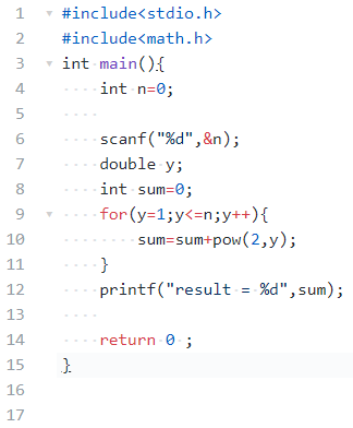 表达式:y=1;y<=n;y++ sum=sum+pow(2,y)