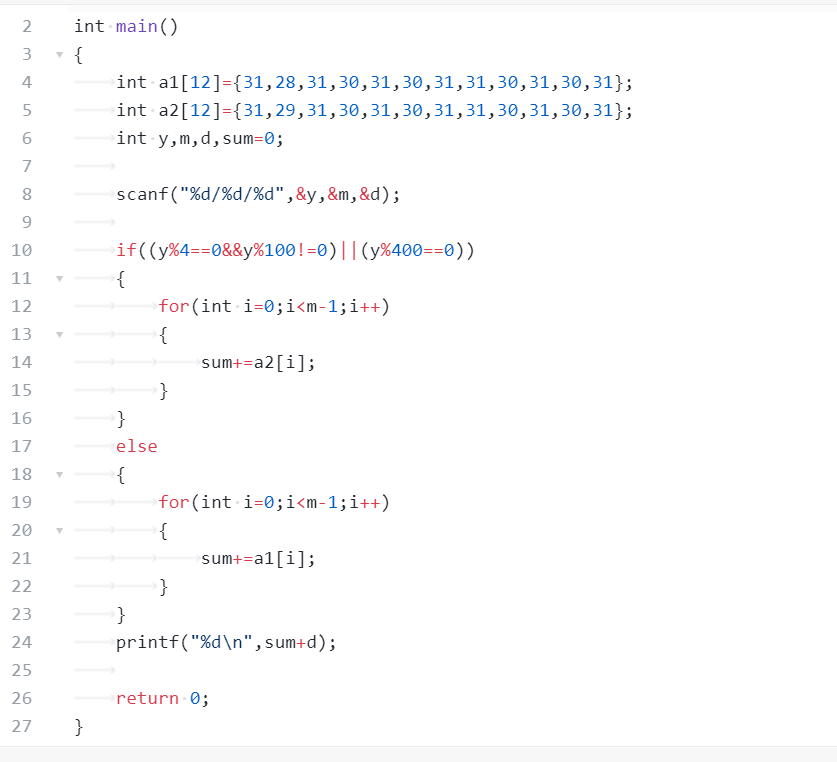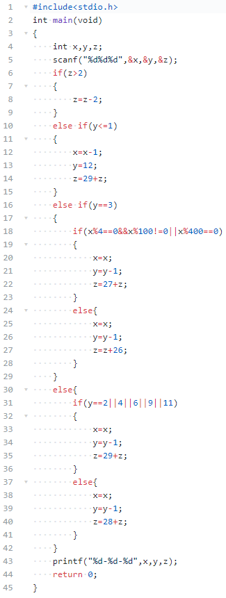 数据表达:本题目的变量是year,month,day;都是整型;用户通过在键盘上输入得到的。