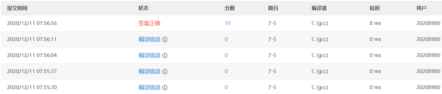 1.PTA实验作业(20分/题)