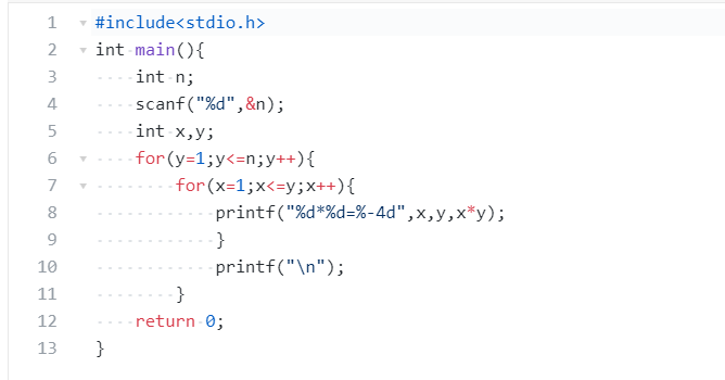 题目: 打印九九口诀表