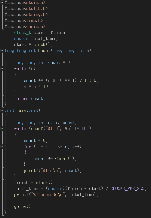 2.1 题目:给定一个十进制正整数N,写下从1开始,到N的所有整数,然后数一下其中出现的所有“1”的个数。