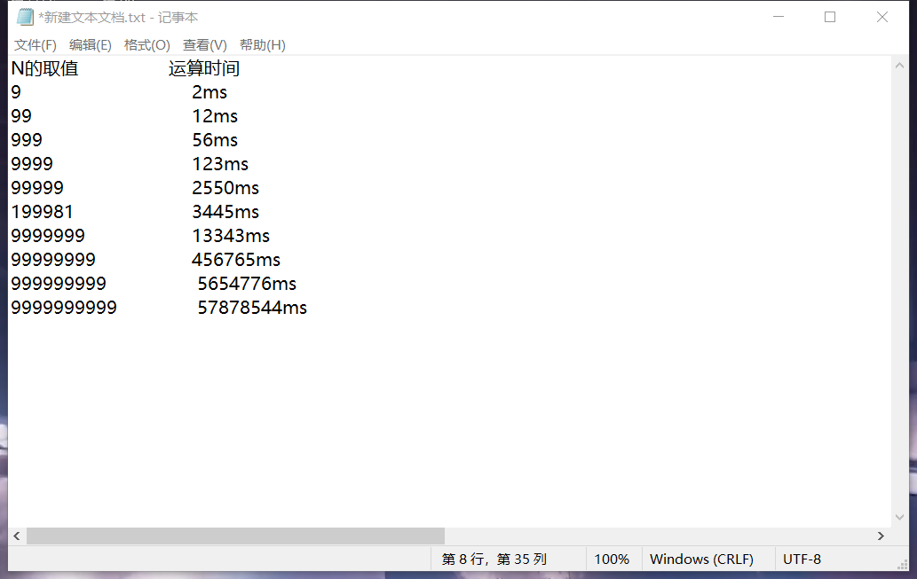 2.给出不同测试数据的运算时间,如果你的运算时间不变,说明你的测试数据不够大(5分)