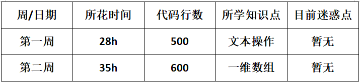 内容总结:通过这一周的学习,我们了解了什么是数组,数组的定义与引用,如何对数组赋初值,如何引用数组解决实际问题。