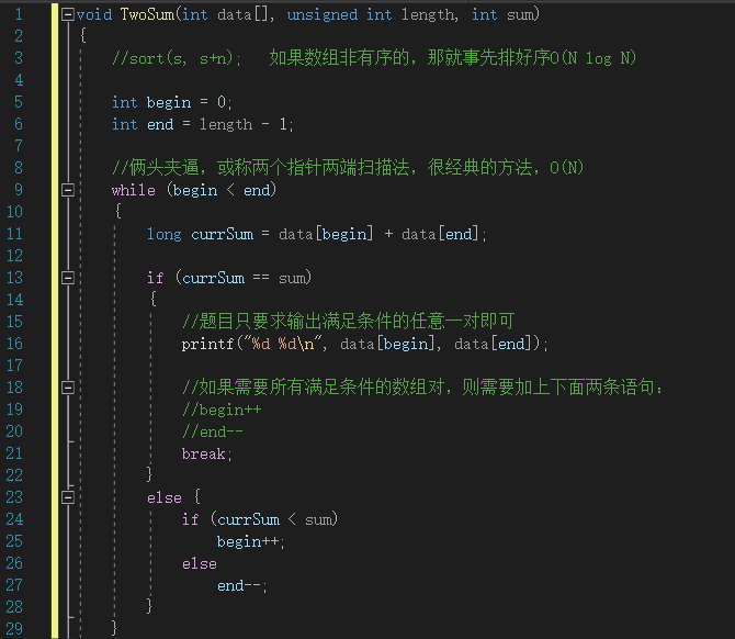 能否快速找出一个数组中的两个数字,让这两个数字之和等于一个给定的值,为了简化起见,我们假设这个数组中肯定存在至少一组符合要求的解。