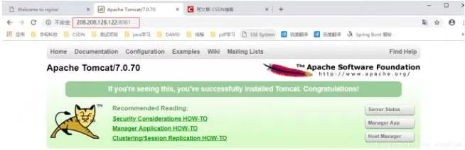 (3)在 windows 系统中通过浏览器访问 tomcat 服务器