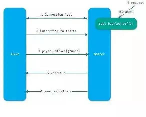 5、主节点根据偏移量把复制积压缓冲区里的数据发送给从节点,保证主从复制进入正常状态。