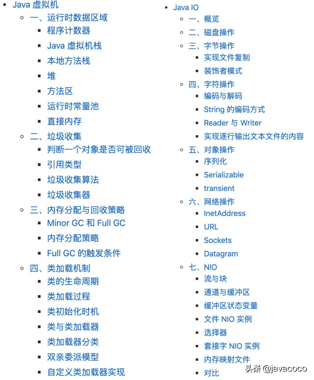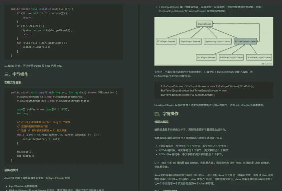 其中包括IO概述、磁盘操作、字节操作、字符操作、对象操作、网络操作、NIO、参考资料