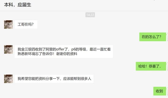 这位粉丝已经成功入职阿里了小编很是羡慕啊!