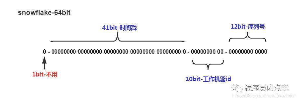 - 第一个bit位(1bit):Java中long的最高位是符号位代表正负,正数是0,负数是1,一般生成ID都为正数,所以默认为0。