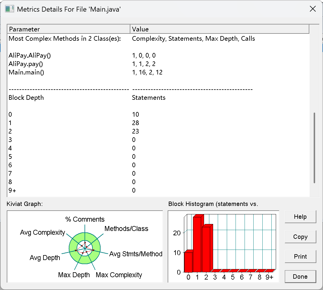 这次题目难度不大,上课认真听了就能写出来,从分析结果来看,注释较少,复杂度低,我再回头看时,程序有许多冗余代码,都是可以从父类中继承来的,就比如Person类,把属性的修饰符都换成protected修饰符,子类就不用覆写这么多一模一样的方法了,在构造子类对象时用super关键字调用父类的构造方法即可。