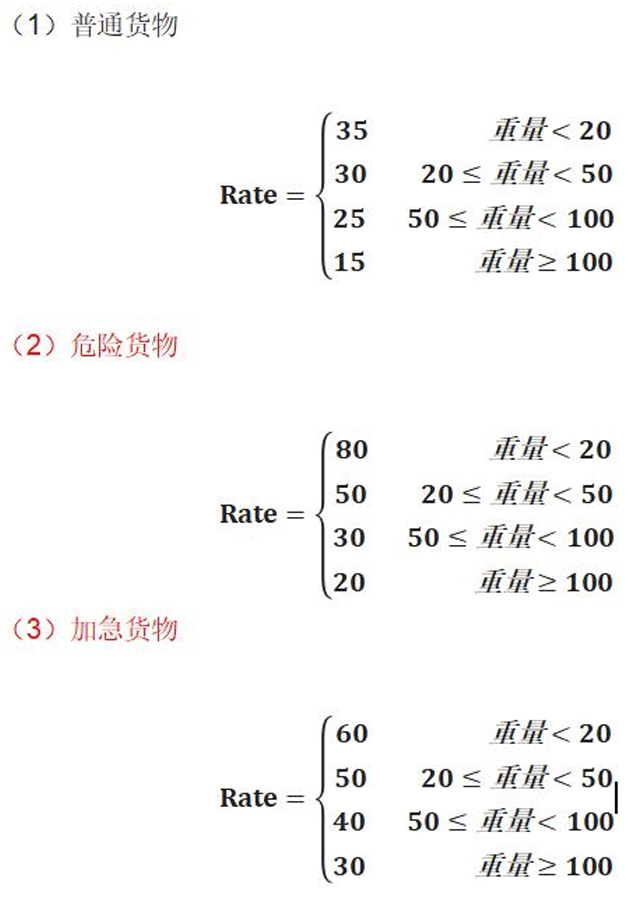 注:一个货运订单可以运送多件货物,每件货物均需要根据重量及费率单独计费。