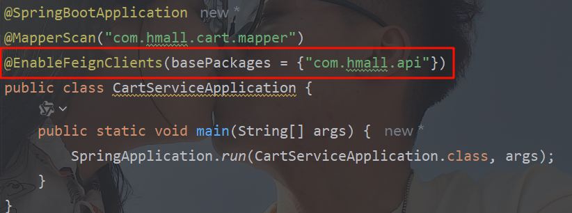 最后,我们在cart-service的CartApplication启动类上添加注解,启动OpenFeign功能: