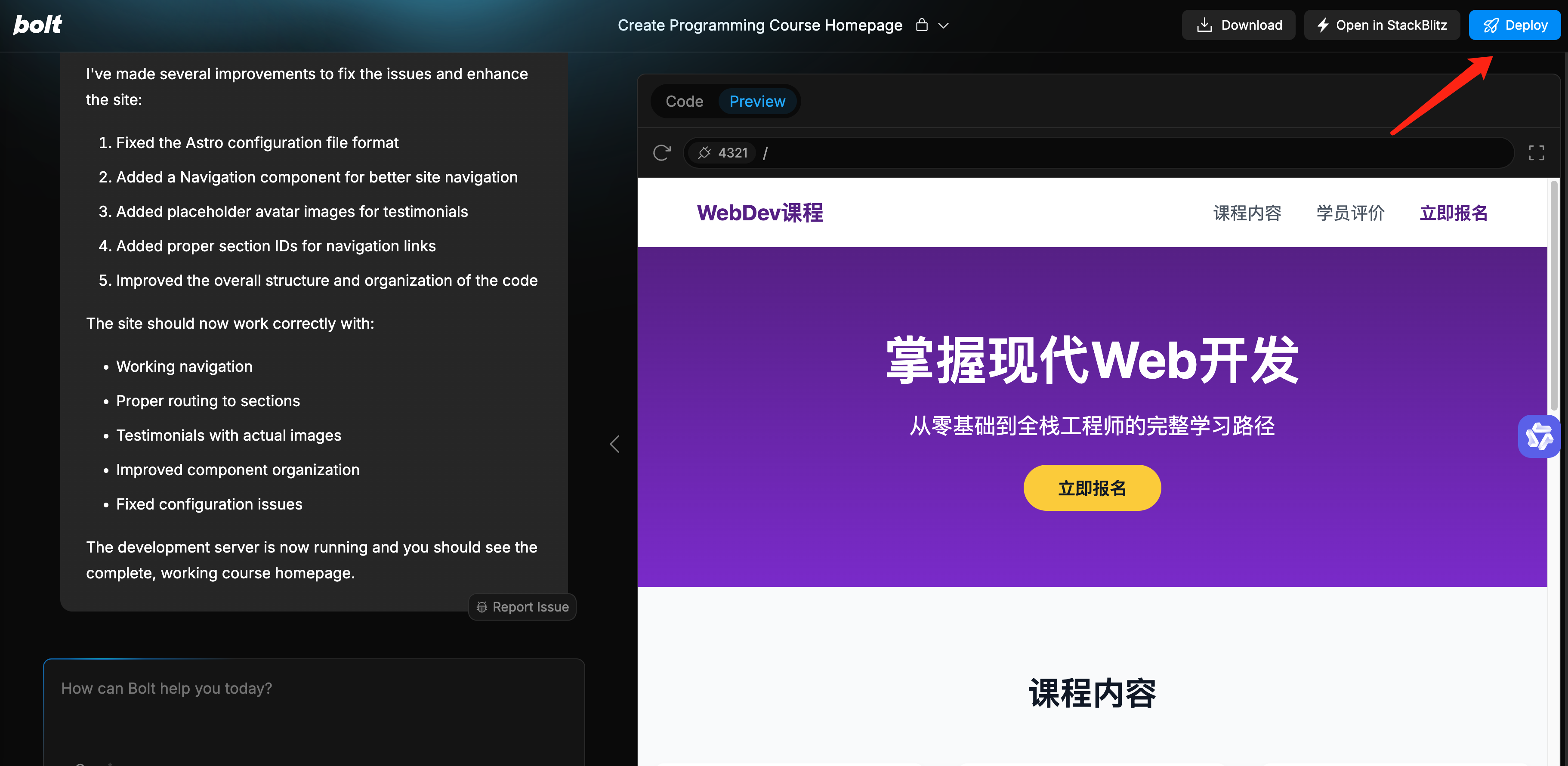 一直优化到你满意,点击Deploy或Open in StackBlitz,代码即可部署上线,得到可公开访问的链接: