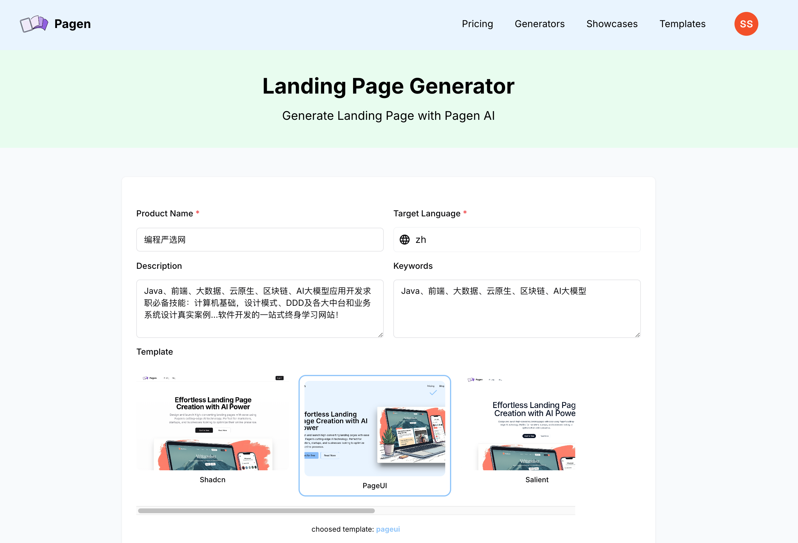 0基础,仅需填写产品名称和描述,选择一个看得上的模板: