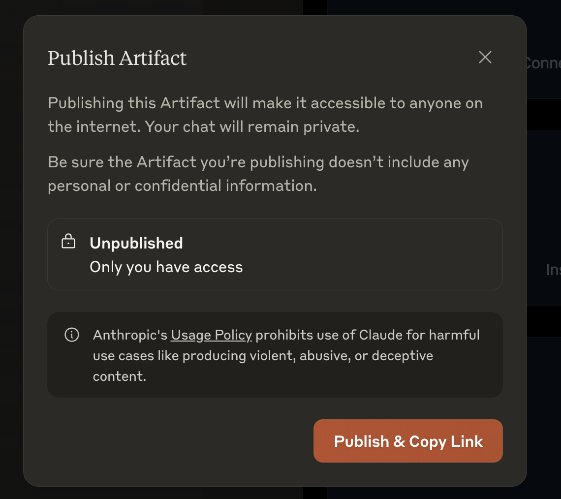 在 Claude 描述需求,快速创建单页应用的代码,直接通过 Claude Artifact 面板预览,也可发布上线,获得一个可公开访问链接。