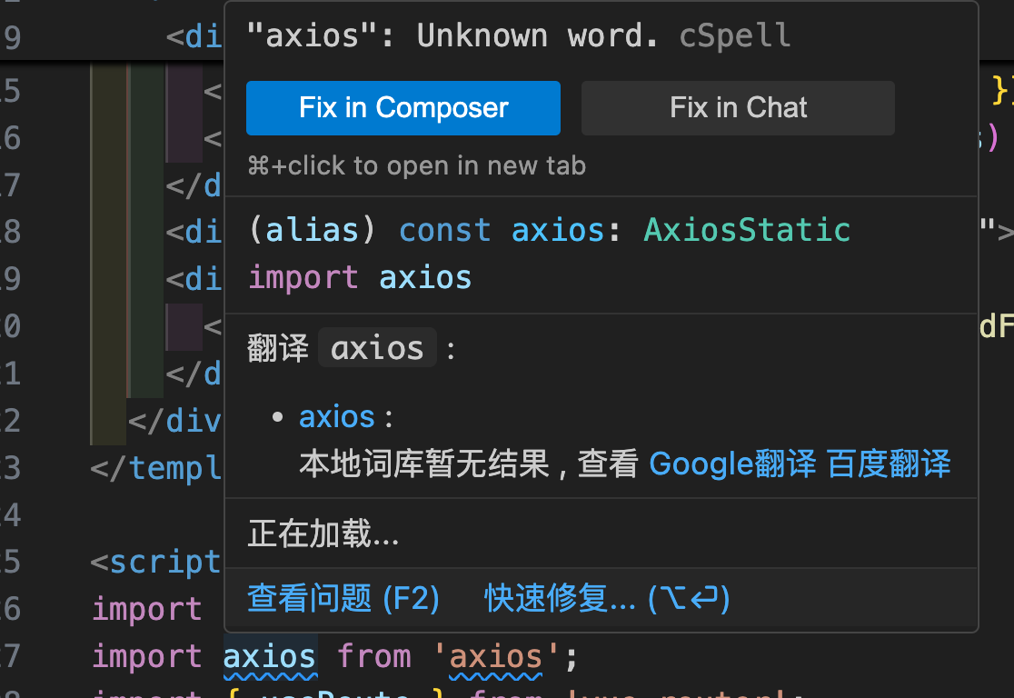 现在,在提示错误的位置,点击 Debug 或 Fix 按钮,就会结合项目上下文,给出错因和可行解决方案。甚至给你写出修复后代码,按照 AI flow 的建议修改,或者在给出的修复代码上点击 Apply,就可以快速找到和修复问题