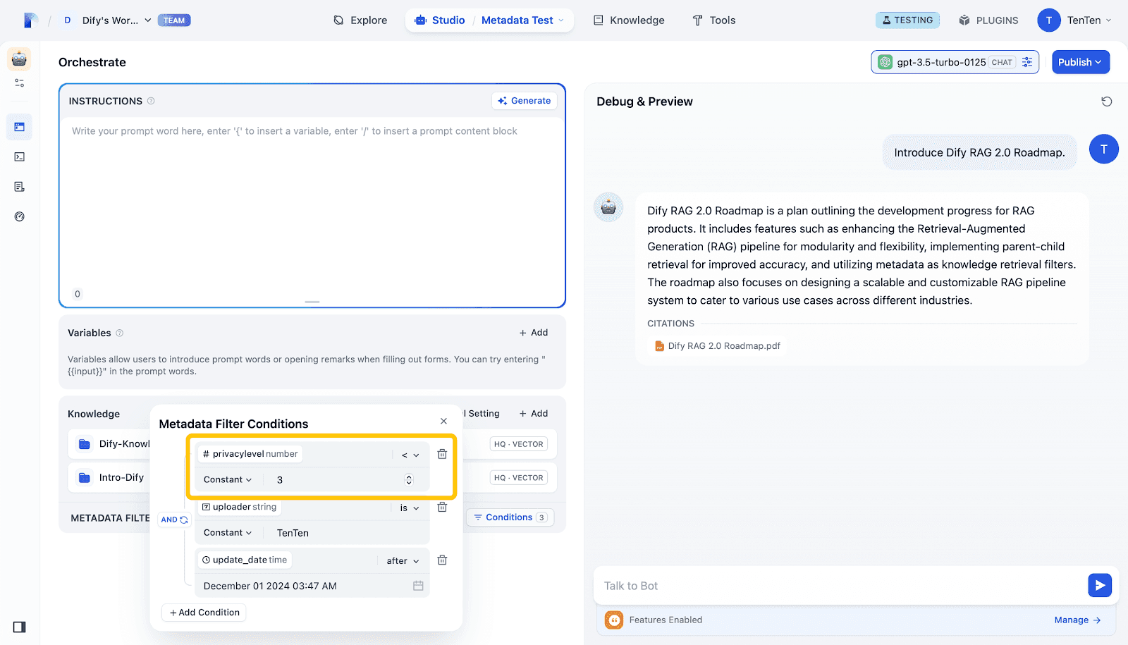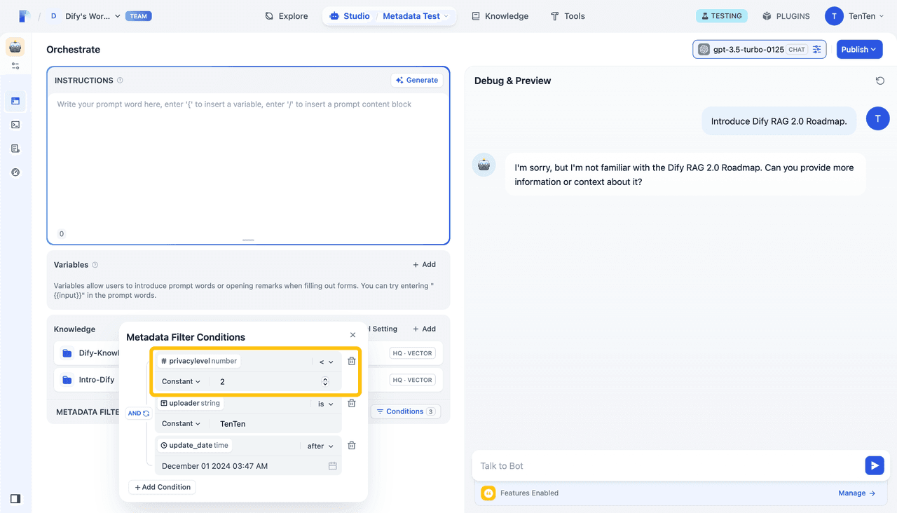 Dify v1.1.0 发布:自定义元数据过滤,让知识检索更高效!