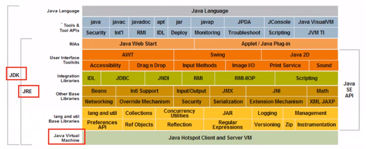 JDK、JRE、JVM: