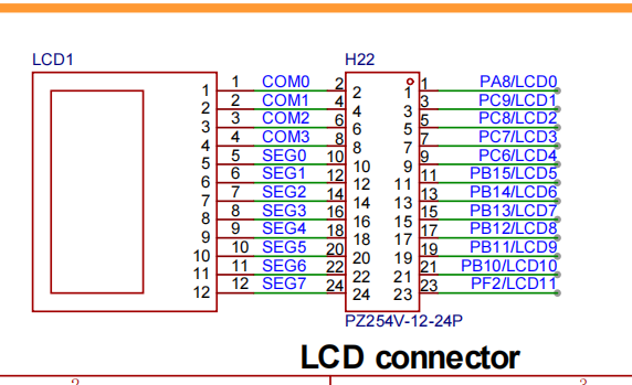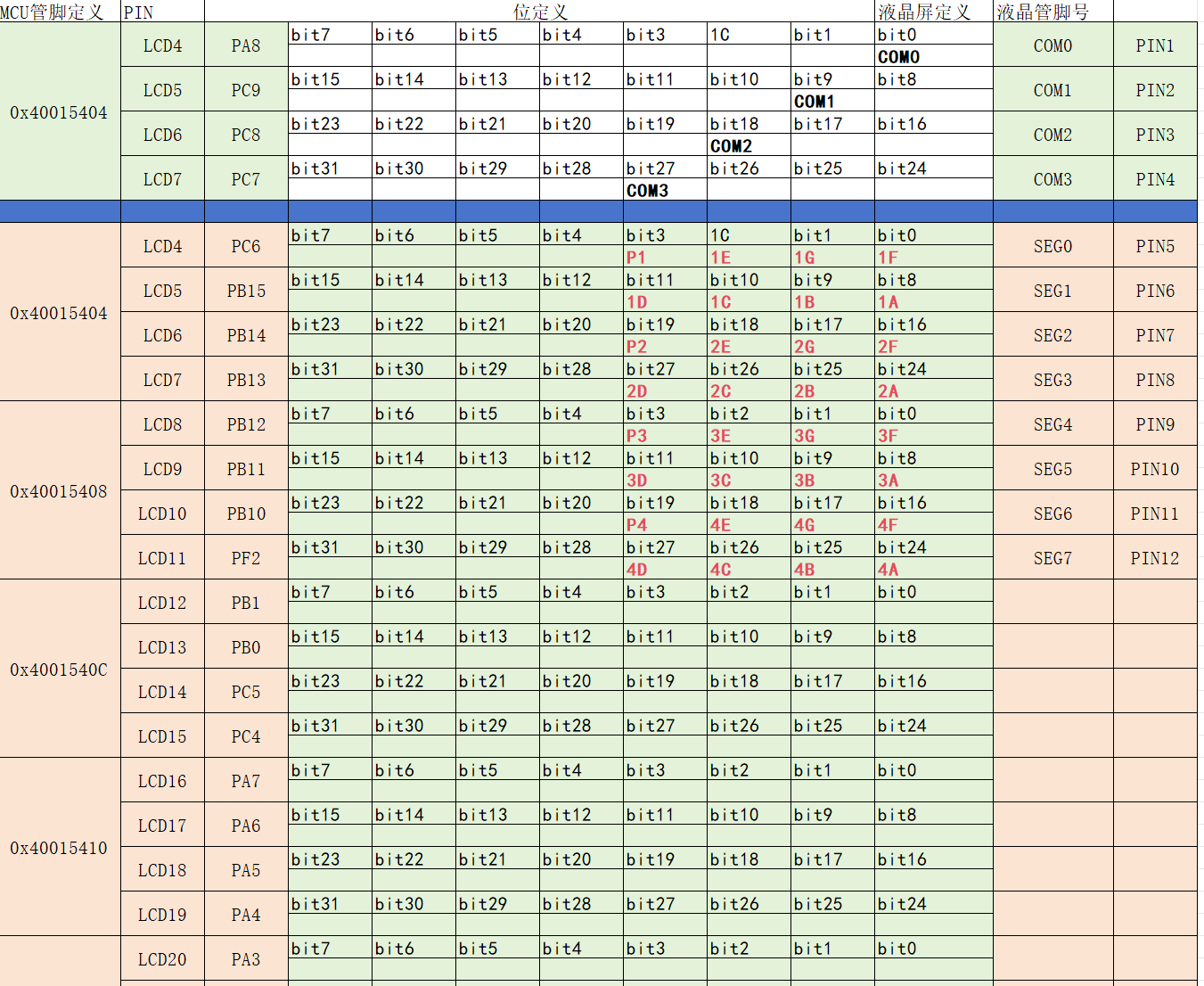 (1)由于所有的LCD管脚都可以复用成COM或者SEG,为了更方便驱动软件的编程,建议COM从LCD0管脚依次往后配;