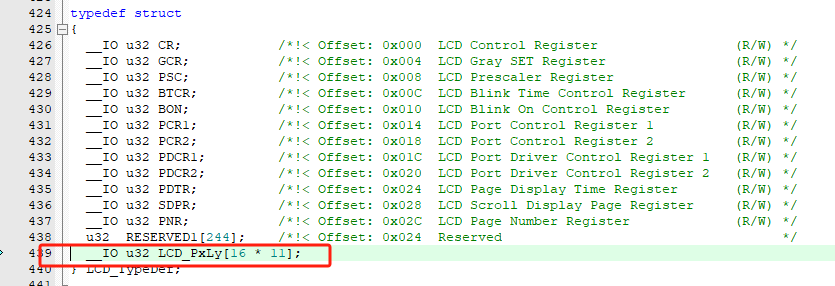 LCD_PAGE_REGS 是每一页面11个32位寄存器