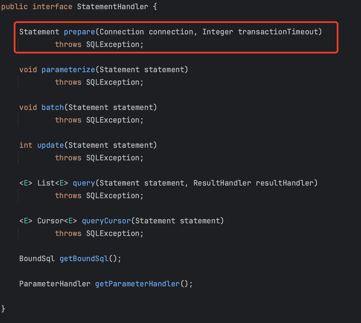 这里是对SQL执行前进行染色增强,所以拦截StatementHandler的StatementHandler方法即可。