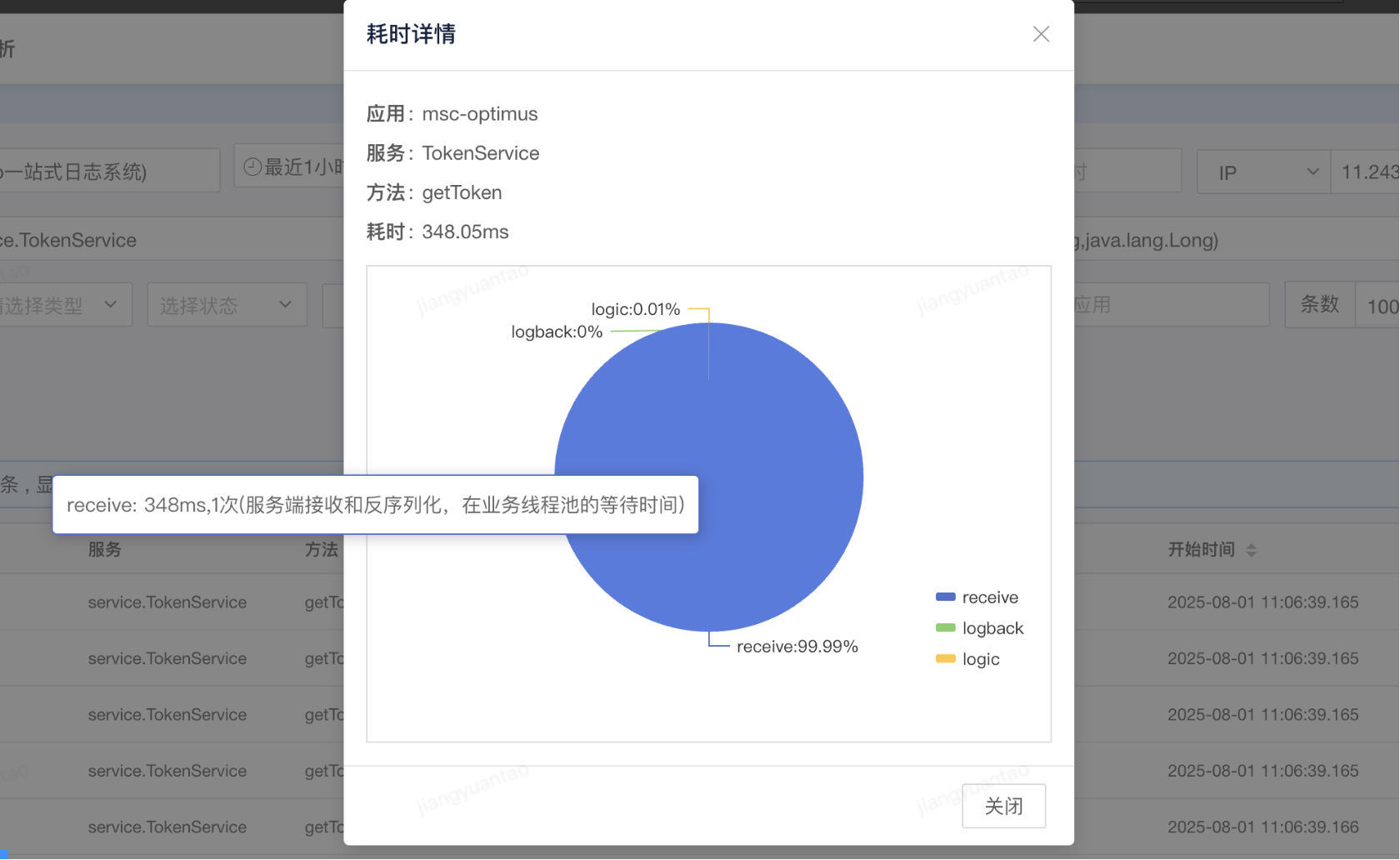 接着借助 SGM 监控平台分析下接口耗时情况,发现方法执行的耗时都处在等待中,为什么会有这多长的等待时间呢?