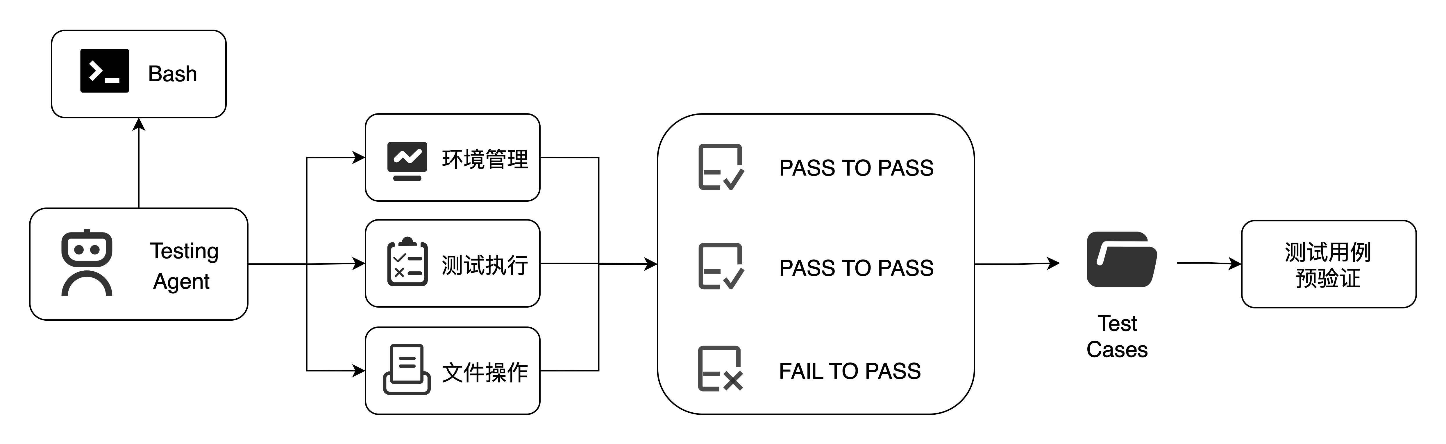 ▪Testing Agent 生成的测试用例不符合规范,例如不满足 1 个 FAIL TO PASS,2 个 PASS TO PASS 的要求,或经大模型判定失败根源是测试用例未能准确表达问题意图,而非补丁本身存在缺陷。