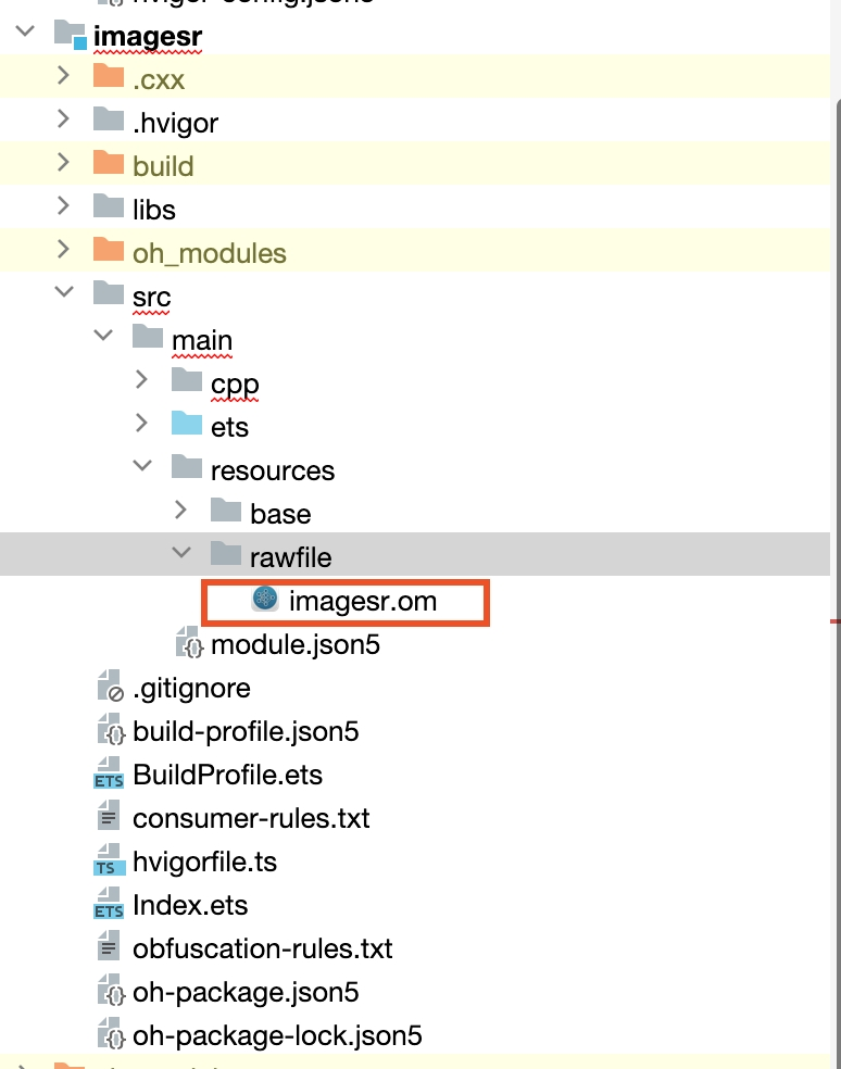 为了让App运行时能够读取到模型文件和处理推理结果,需要先把离线模型和模型对应的结果标签文件预置到工程的“entry/src/main/resources/rawfile”目录中。