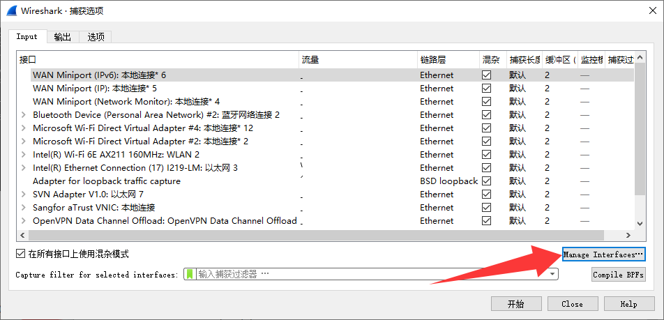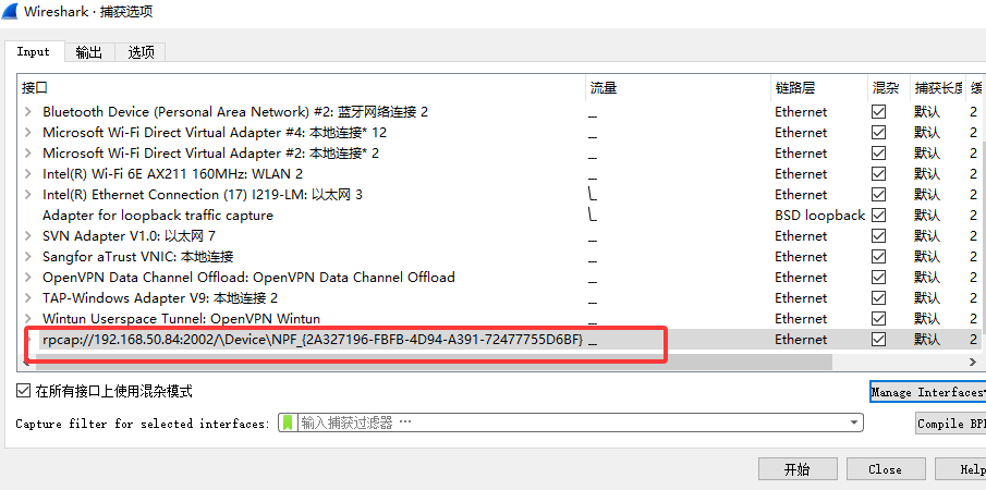 接下来调用这个远程端口就可以直接对目标机器的网卡进行在线抓包分析