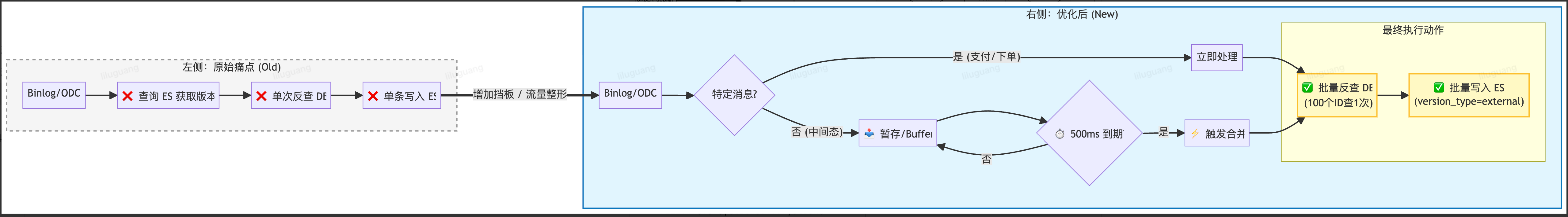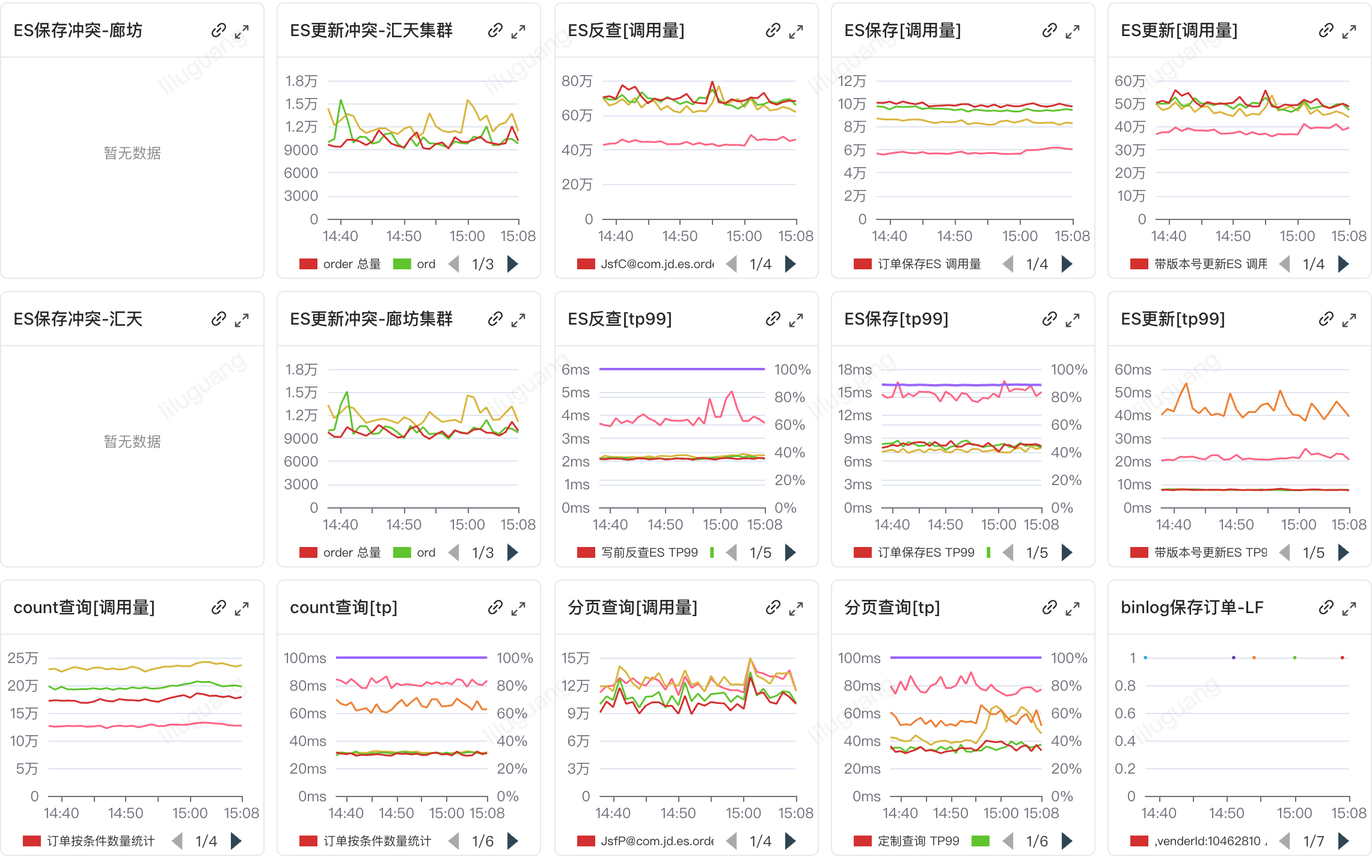 3、ES的核心数据源是上游订单数据库的binlog消息,随着业务不断迭代,接入了更多的消息如:order_submit(提单)、delete_parent_order(拆单)、orderpipe_edit_v2(管道修改)、ODC(锁定、解锁、取消)、order_state_zanting(暂停)、afs_status(售后状态)、comment_change(备注变更)等将近10+的消息。订单ES更新频次持续增加,每分钟高达30万,每新增一个MQ消费,每个订单至少会增加1次更新操作。ES的更新冲突明显增加,对于订单检索的时效性也带来了很大压力。