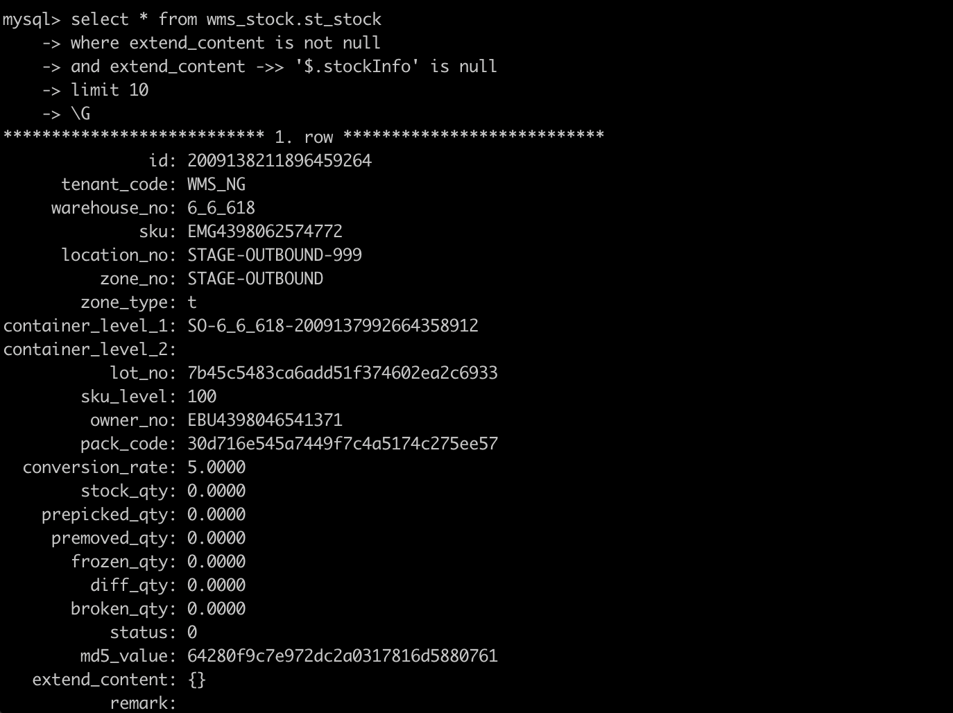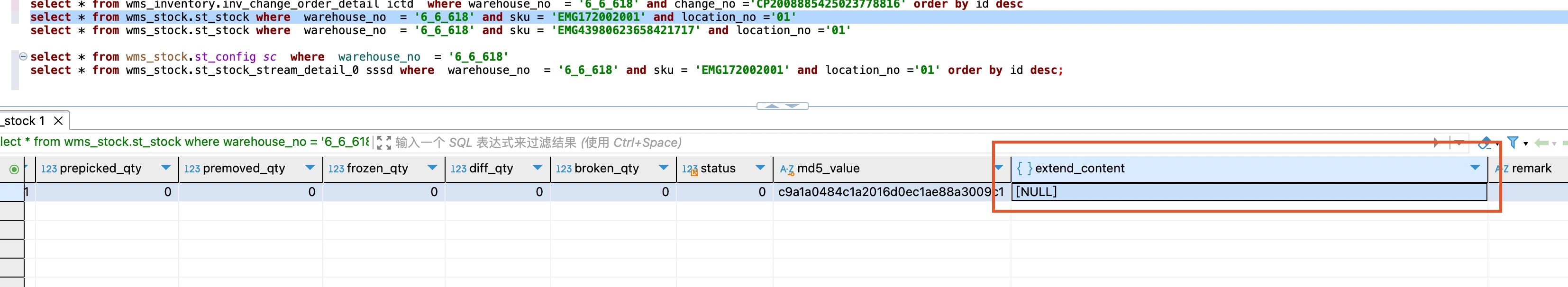 在二手库或逆向条件,有比较多的扩展属性,其他条线缺没有这些属性值,这些属性以JSON扩展的方式存储。