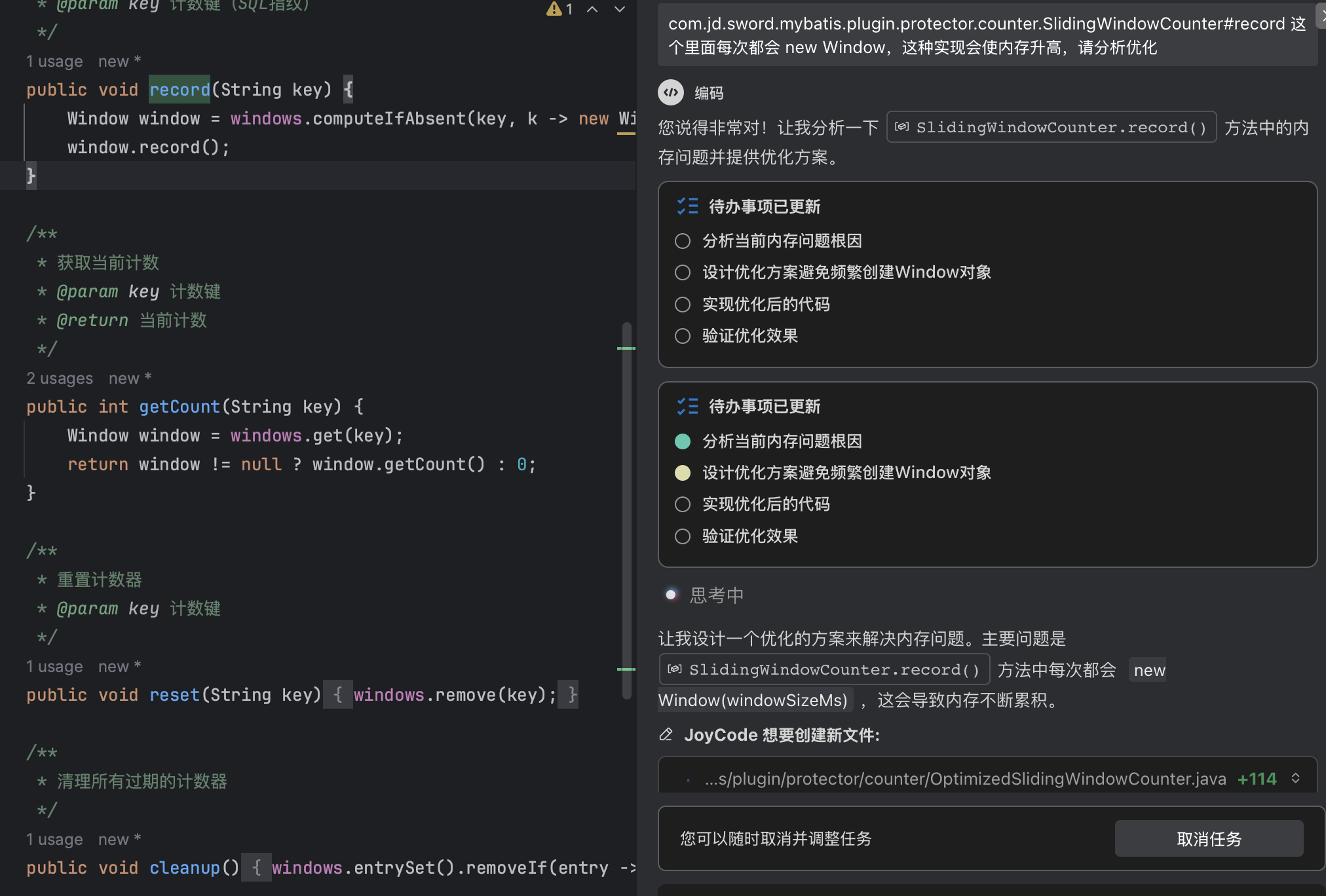 com.jd.sword.mybatis.plugin.protector.counter.OptimizedSlidingWindowCounter 这个刚优化后的类,看上去并没有被引用,请检查