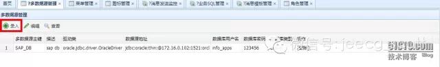下面我们重点讲解下JEECG3.5GA版本多数据源的使用。在使用多数据源之前我们有必要了解什么是多数据源?为什么我们需要使用多数据源呢?多数据源是指同一个系统中处理的数据来自不同的数据源。比如我们在用ETL做数据同步、清洗和整合的时候经常要配置源库、整合库、清洗库、目标库等,如此多的数据源,我们需要采用灵活的机制配置,保证数据源间的自由切换。JEECG3.5提供了多数据源的功能,JEECG多数据源的设计直接利用了Springjdbc连接,跟Hibernate、Mybatis等持久化框架无关,就跟我们采用最原始的JDBC连接一样,简单方便。JEECG数据库中t_s_data_source表用来存放动态的数据源,系统在启动时通过org.jeecgframework.web.system.listener.InitListener把t_s_data_source表中的所有动态数据源信息配置到静态的Map中,其中t_s_data_source.db_key字段作为Map的key,以t_s_data_source的实体类作为value。