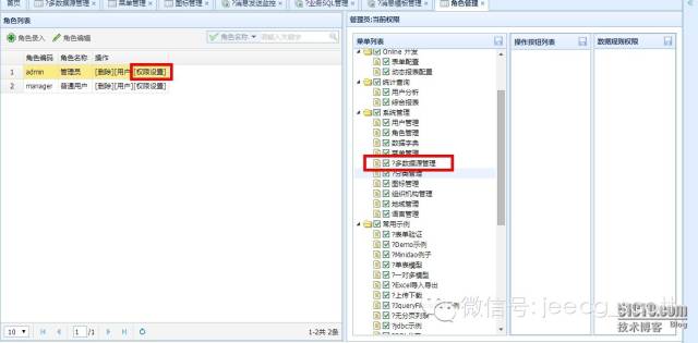 进入“系统管理”à“角色管理”,单击“角色列表”下的【权限设置】,加载“菜单列表”,勾选“多数据源管理”前面的复选框,单击“菜单列表”旁边的保存图标进行保存角色菜单权限。