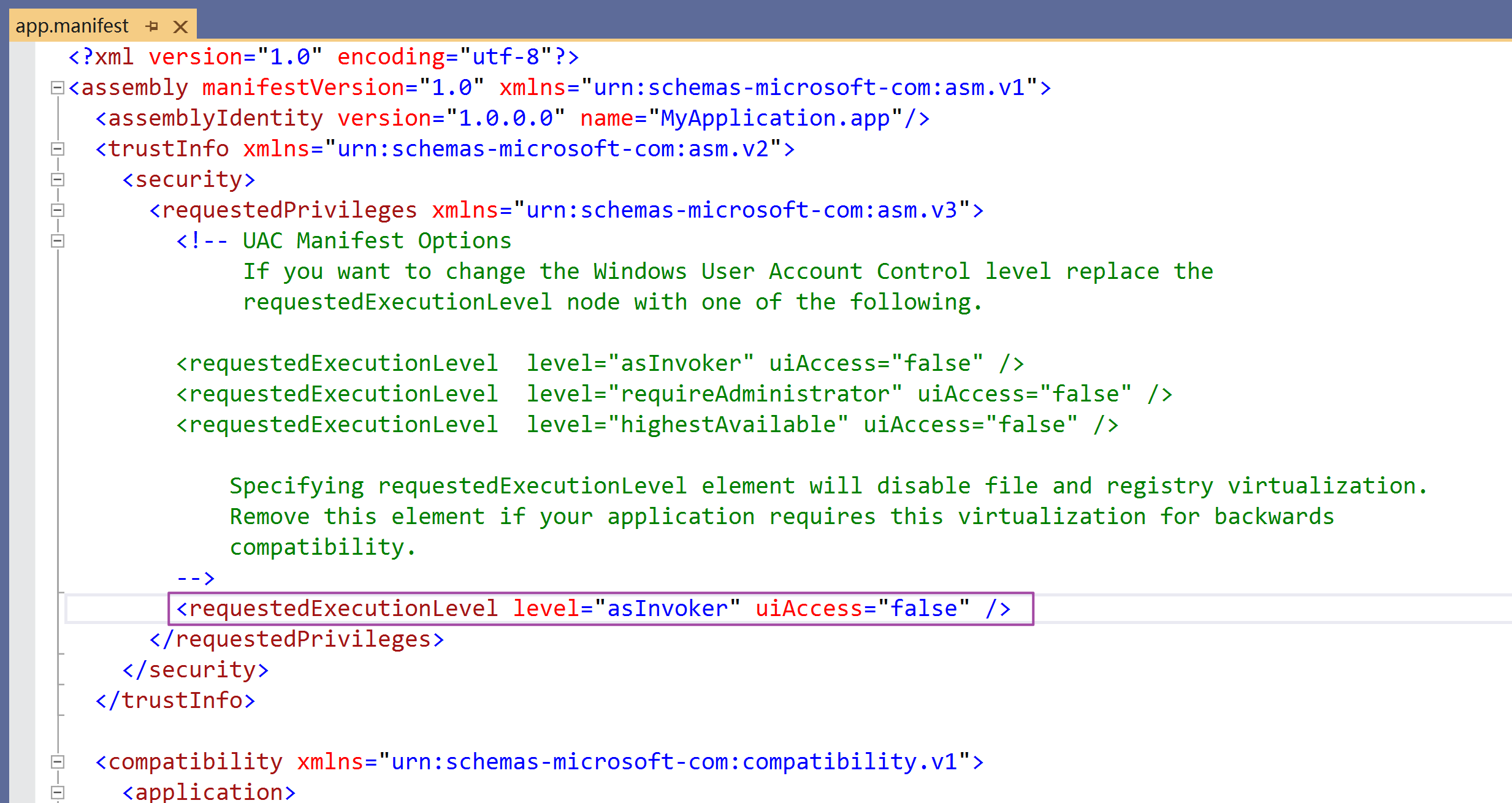 <requestedExecutionLevel level="asInvoker" uiAccess="false" />