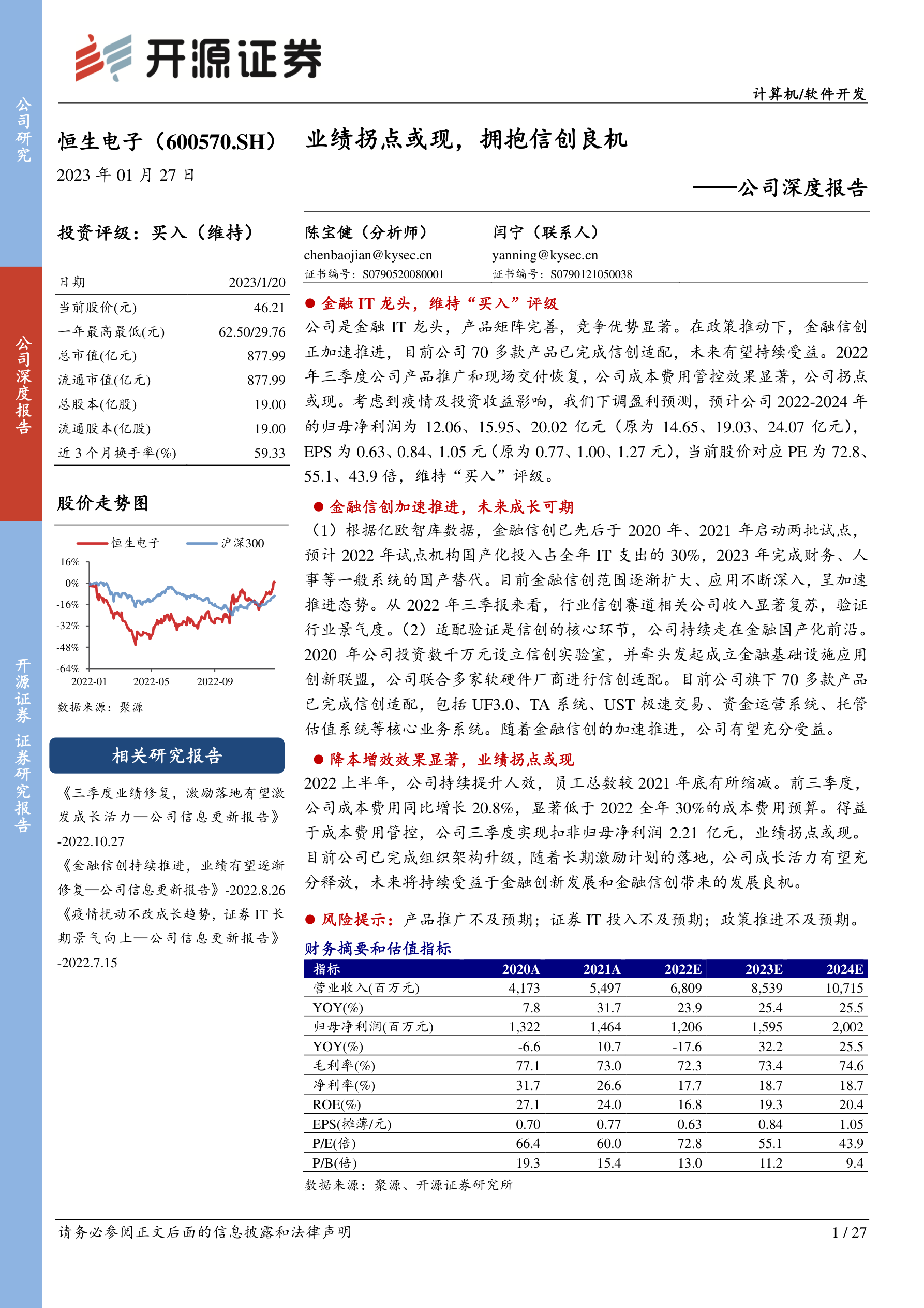 - 【个股230128开源证券_恒生电子】公司深度报告:业绩拐点或现,拥抱信创良机