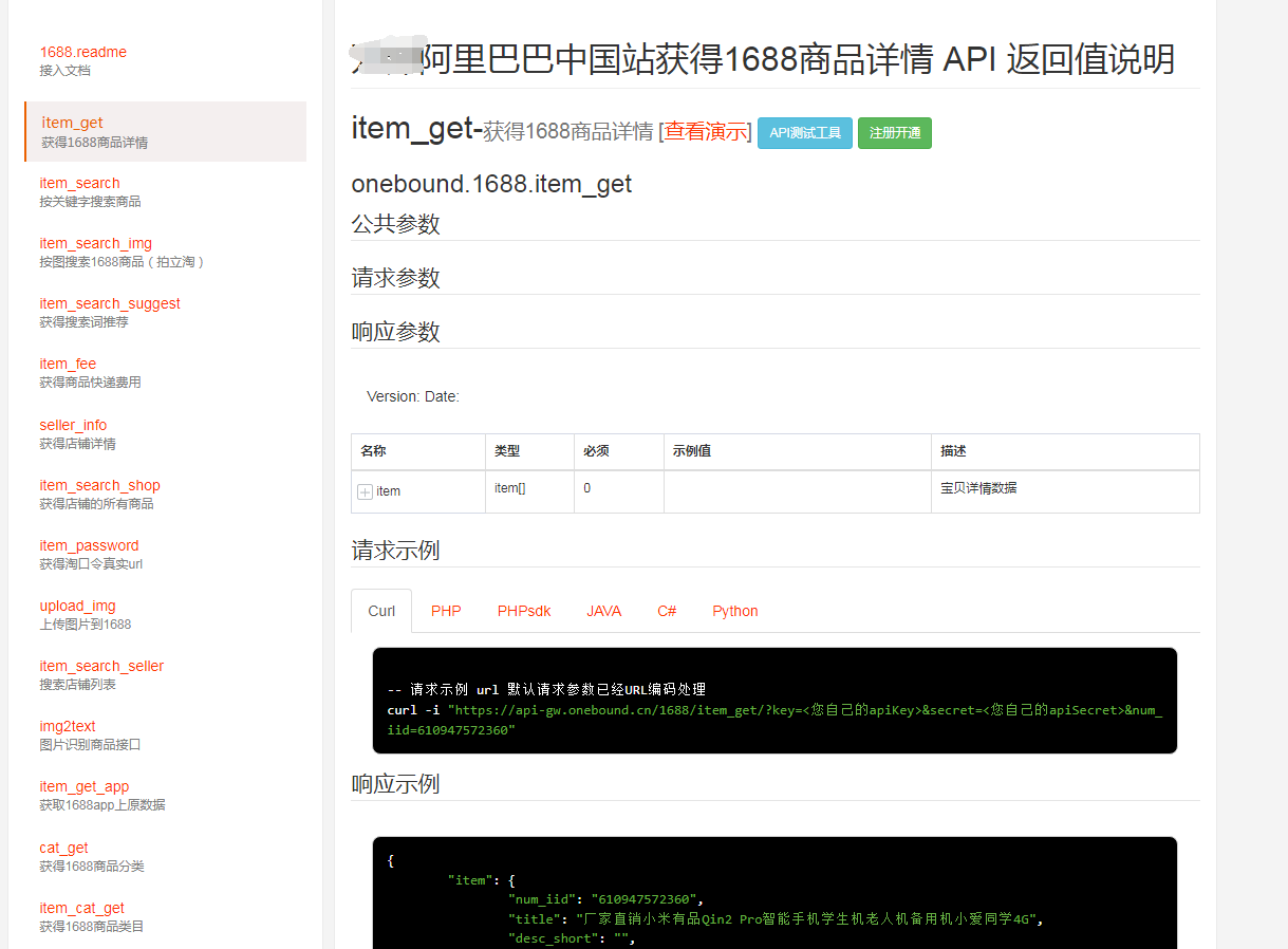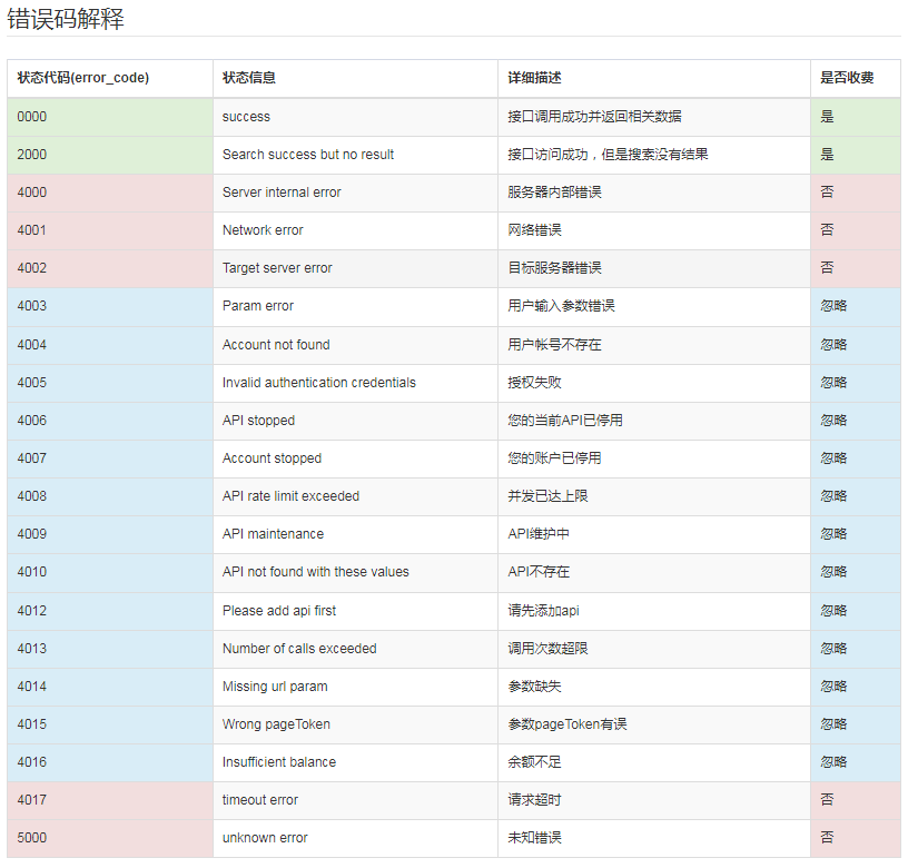 API接口提供商一般都会提供一个数据说明文档,里面详细说明了参数、返回值、调用案例以及错误码解释等。