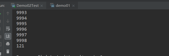 private static void demo02() { long s = System.currentTimeMillis(); for (int i = 0; i < 9999; i++) { System.out.println(i); } long e = System.currentTimeMillis(); System.out.println(e-s); }