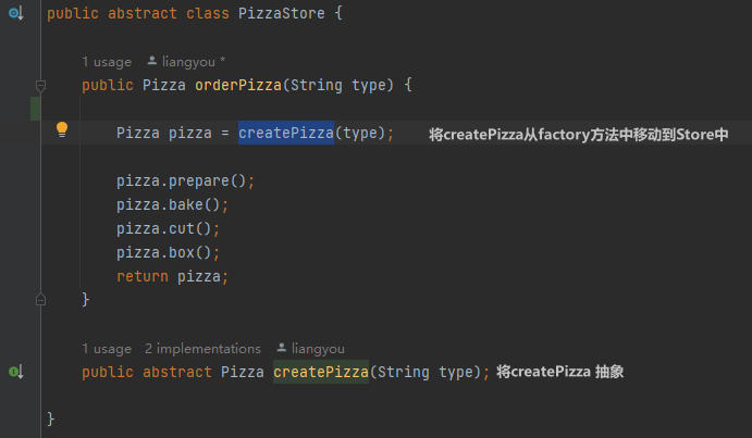 PizzaStore aStore=new PizzaStore(aFactory); //然后建立一个比萨店,将A工厂的引用作为参数。