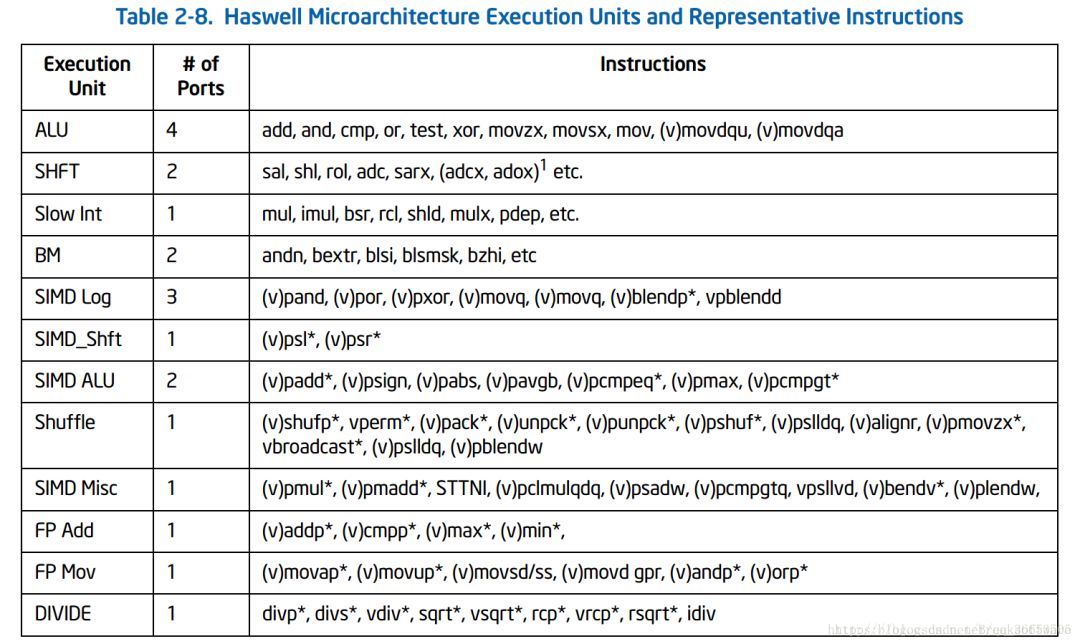可以看到,其有20多种“执行单元”(Execution Units),如ALU、FMA、FP add和FP mul等。每个“执行单元”用于处理不同的指令