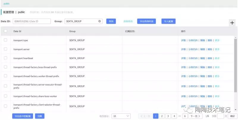 成功后在nacos的配置列表中能看到seata的相关配置