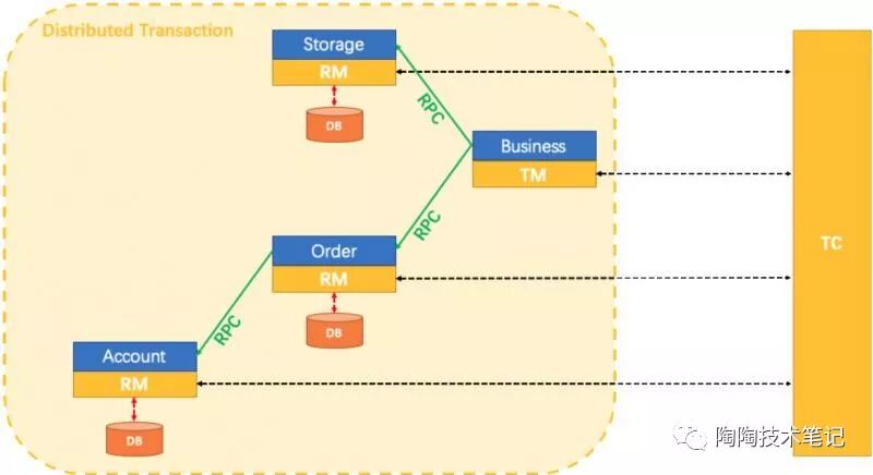 一个典型的分布式事务过程: