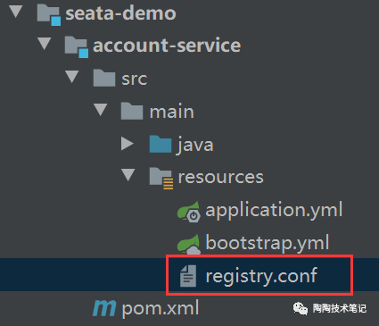直接把 seata-server 中的registry.conf复制到每个服务中去即可,不需要修改