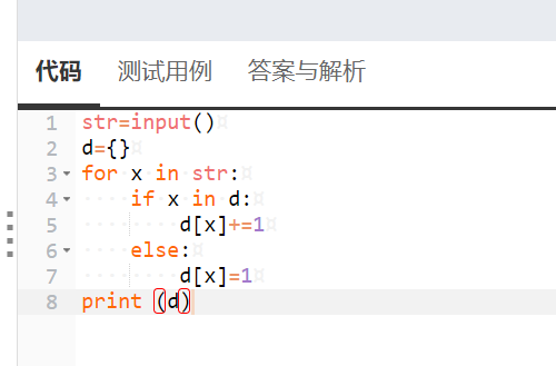 2)输入格式是一个以回车结束的字符串,例如输入abc1ab,输出{'a': 2, 'b': 2, 'c': 1, '1': 1}。