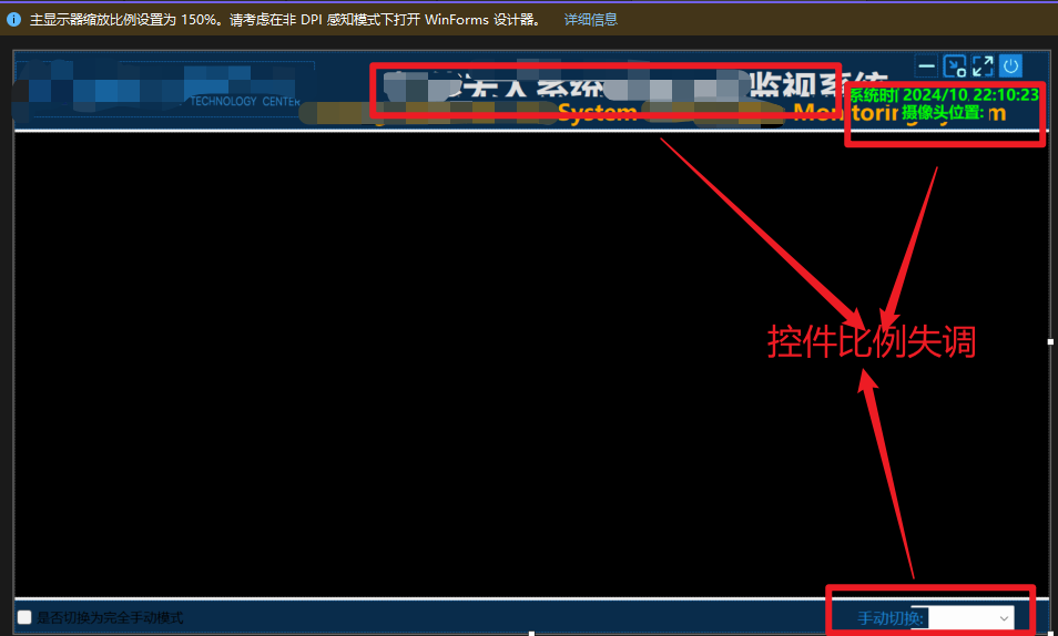 项目解决方案源码一打开还是会出现控件比列失调,但是开发界面没有缩放比列重启打开的按钮,不好调试界面控件,Debug运行也是直接控件比列失调。