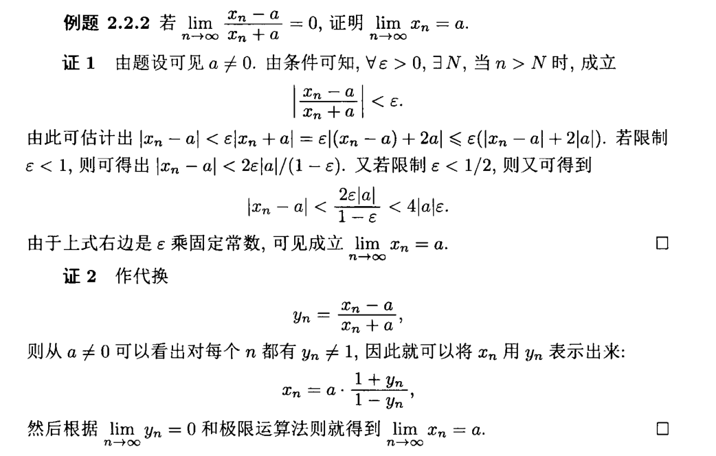 由\(g(x)\to 0\)及\(\frac{x-\sqrt{x^2+4}}{2}\)的连续性,有\(f(x)\to 1\).\(\qquad\vartriangleleft\)