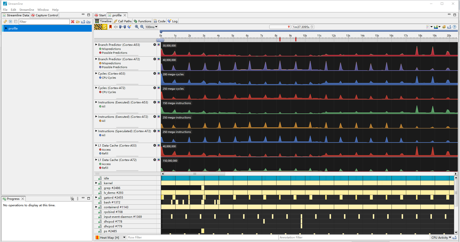 Arm Performance Studio 将自动停止捕捉并开始分析数据,分析完后的画面如下: