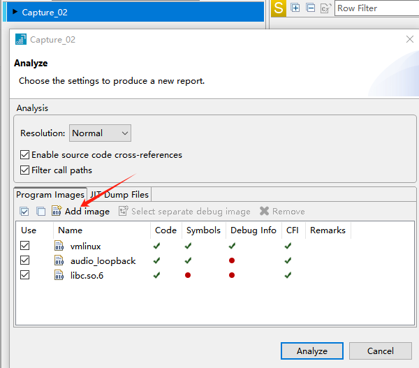 添加需要的符号文件,如上图中的 vmlinux 等,然后点击 Analyze 按钮,分析后的数据就可以看到符号信息了: