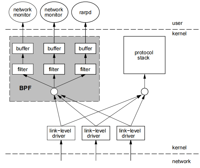 用来过滤的 BPF 指令段是每 socket 独立的,通过接口 setsockopt(fd, SOL_SOCKET, SO_ATTACH_FILTER, ...) 设置。如下面的代码片段,表示 socket 只接收来自 IP 地址 192.168.0.18 的数据包: